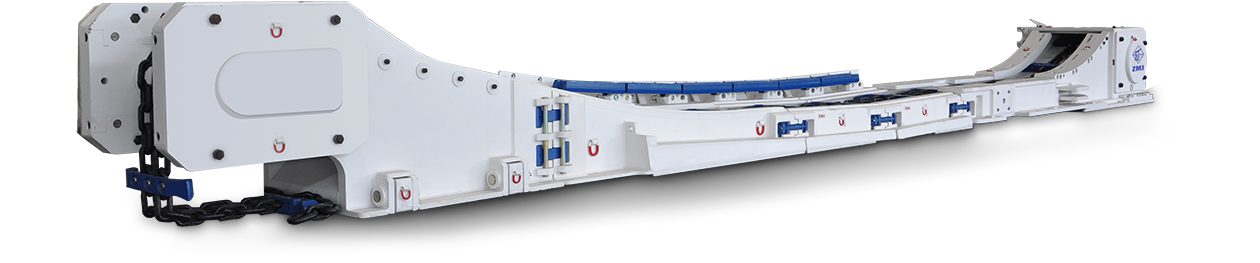 該刮板輸送機(jī)被認(rèn)定為2018年河南省重大技術(shù)裝備,其中部槽采用先進(jìn)的技術(shù)制造,壽命較傳統(tǒng)鑄焊設(shè)備提高2倍以上。 通過(guò)優(yōu)化設(shè)計(jì)解決了中部槽中板、鏟板等易磨損的難題,采用了雙層中板結(jié)構(gòu),保證槽體強(qiáng)度始終如一,提高設(shè)備可靠性。 電纜槽多通道布置,將電纜、水管、液壓管路等隔離,易于維護(hù);同時(shí)采用雙瓦楞板電纜槽結(jié)構(gòu),保證剛性。